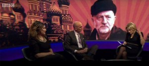 (Corbyn figured against backdrop in a pastiche of Soviet Constructivism, featured on the BBC’s Newsnight programme)